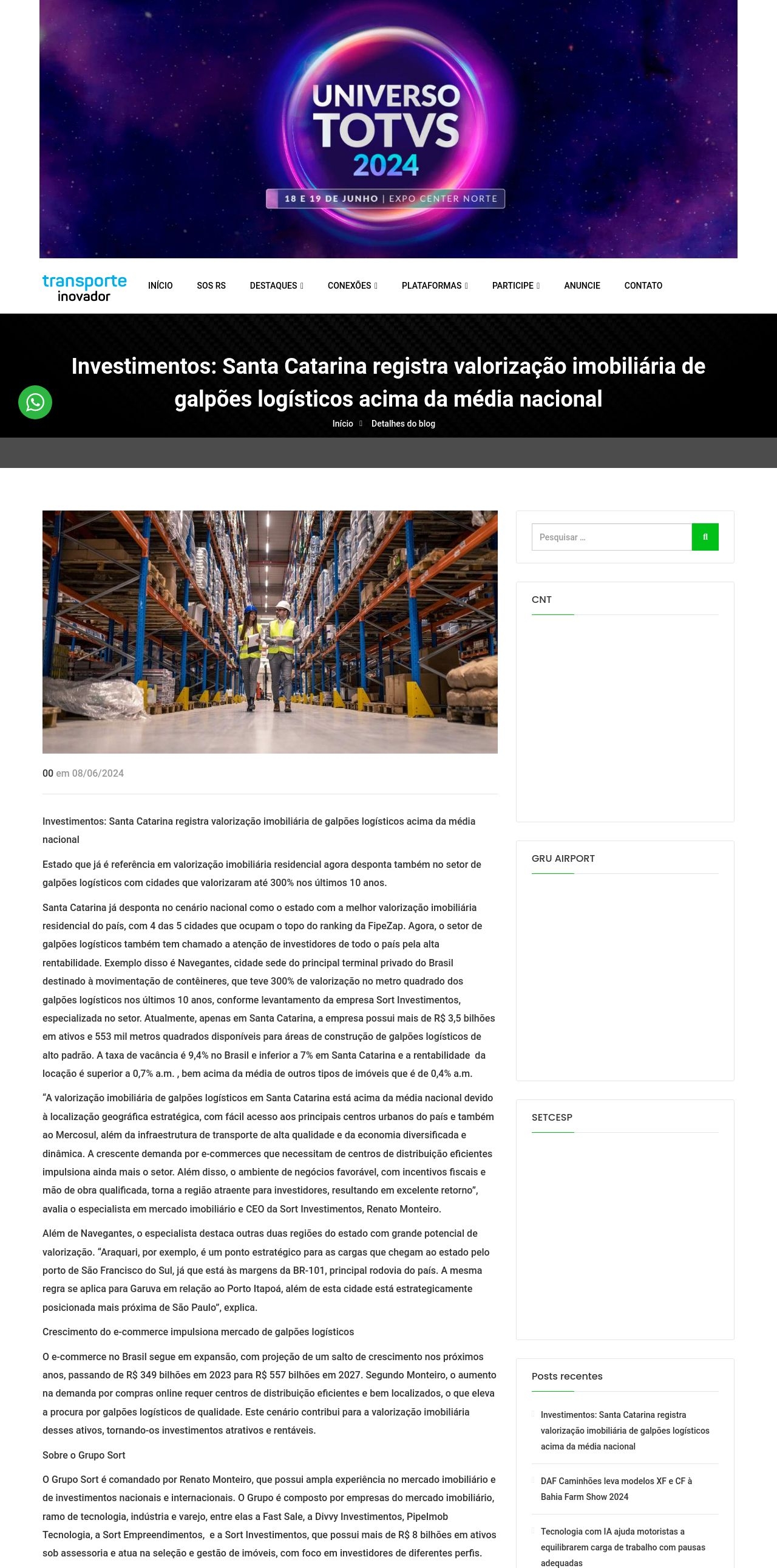 Investimentos: Santa Catarina registra valorização imobiliária de galpões logísticos acima da média nacional - Transporte Inovador