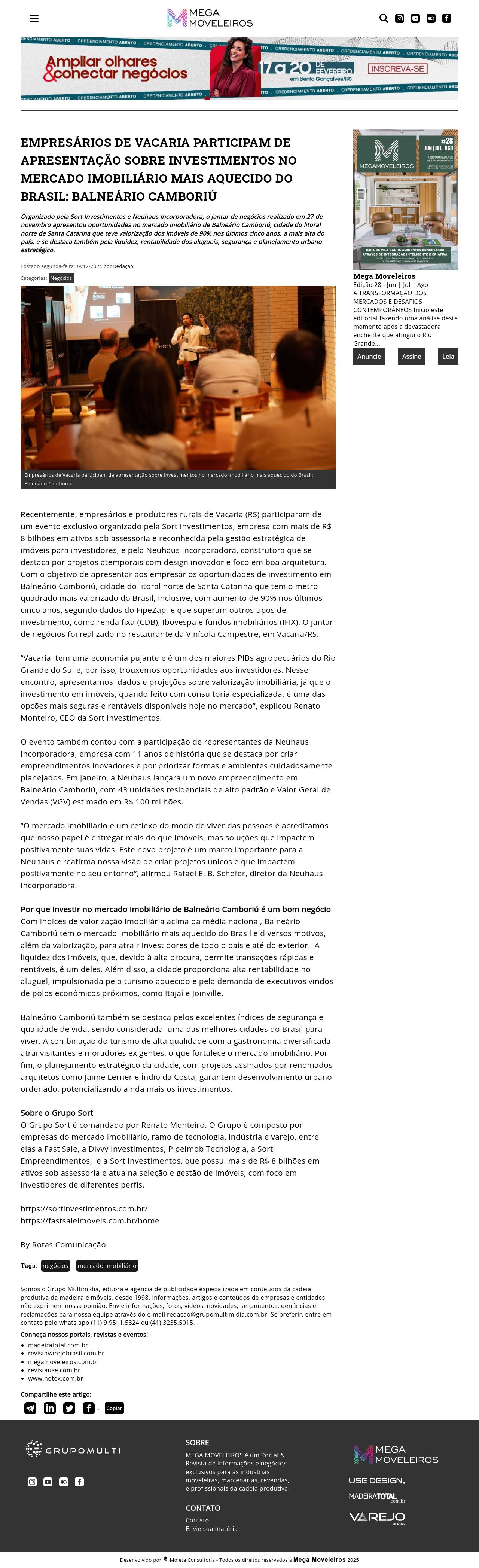 Mega Moveleiros - Empresários de Vacaria participam de apresentação sobre investimentos no mercado imobiliário mais aquecido do Brasil: Balneário Cam