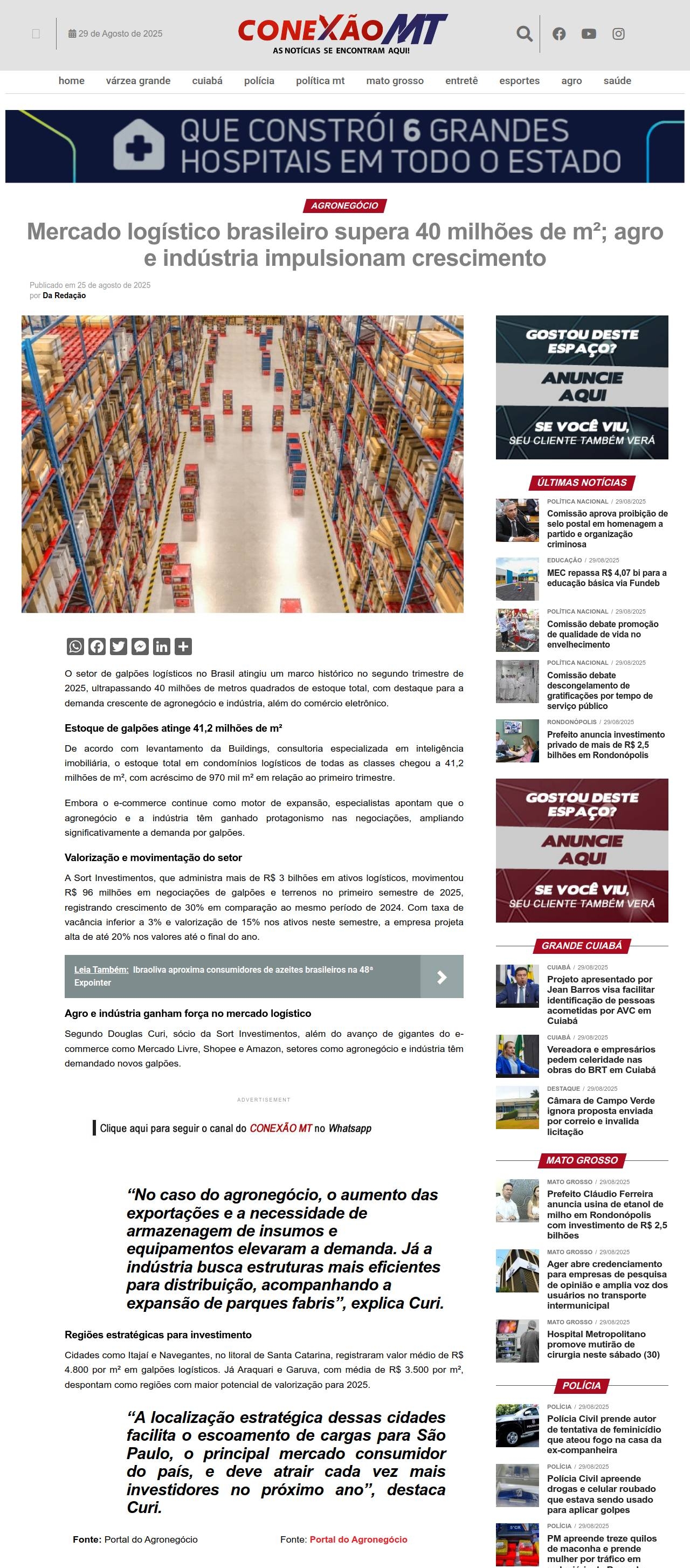 https://conexaomt.com/agronegocio/mercado-logistico-brasileiro-supera-40-milhoes-de-m%c2%b2-agro-e-industria-impulsionam-crescimento